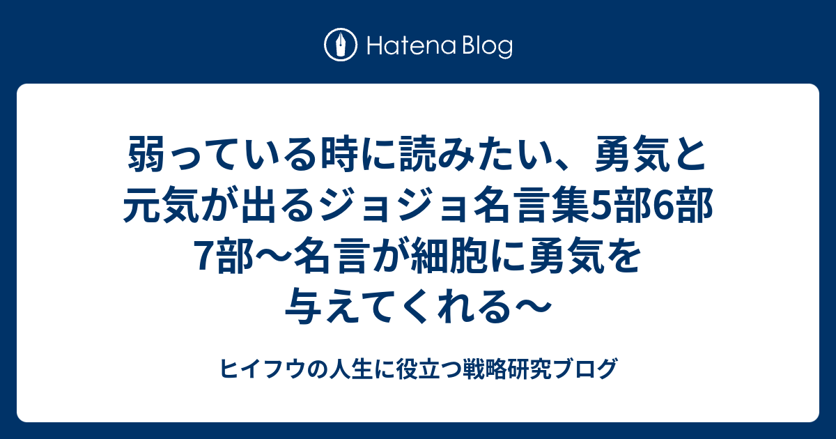 弱っている時に読みたい 勇気と元気が出るジョジョ名言集5部6部7部 名言が細胞に勇気を与えてくれる ヒイフウの人生に役立つ戦略研究ブログ